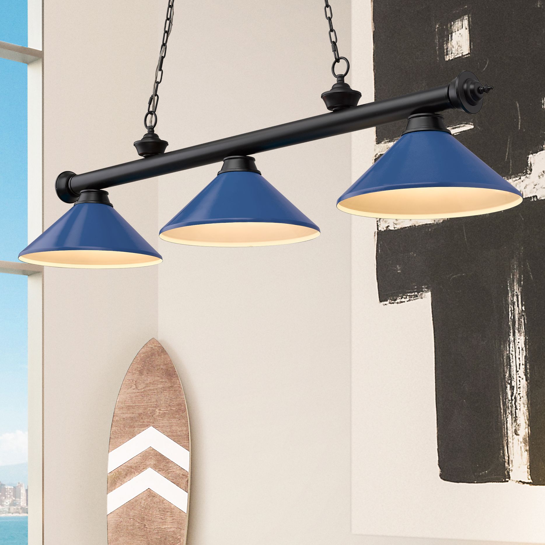 Cordon 58"W Matte Black Navy Blue 3-Light Billiard Pendant