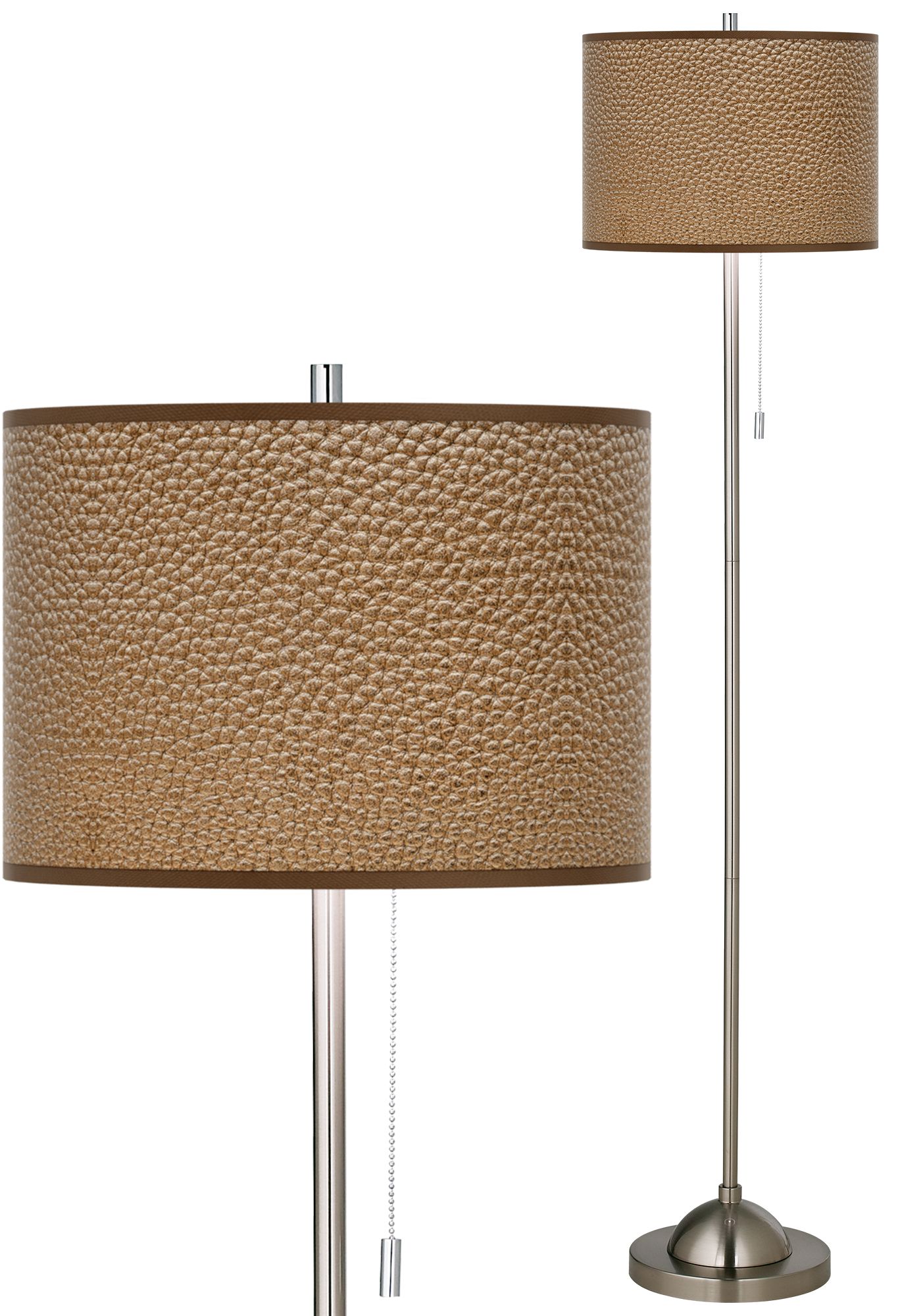Simulated Leatherette Brushed Nickel Pull Chain Floor Lamp