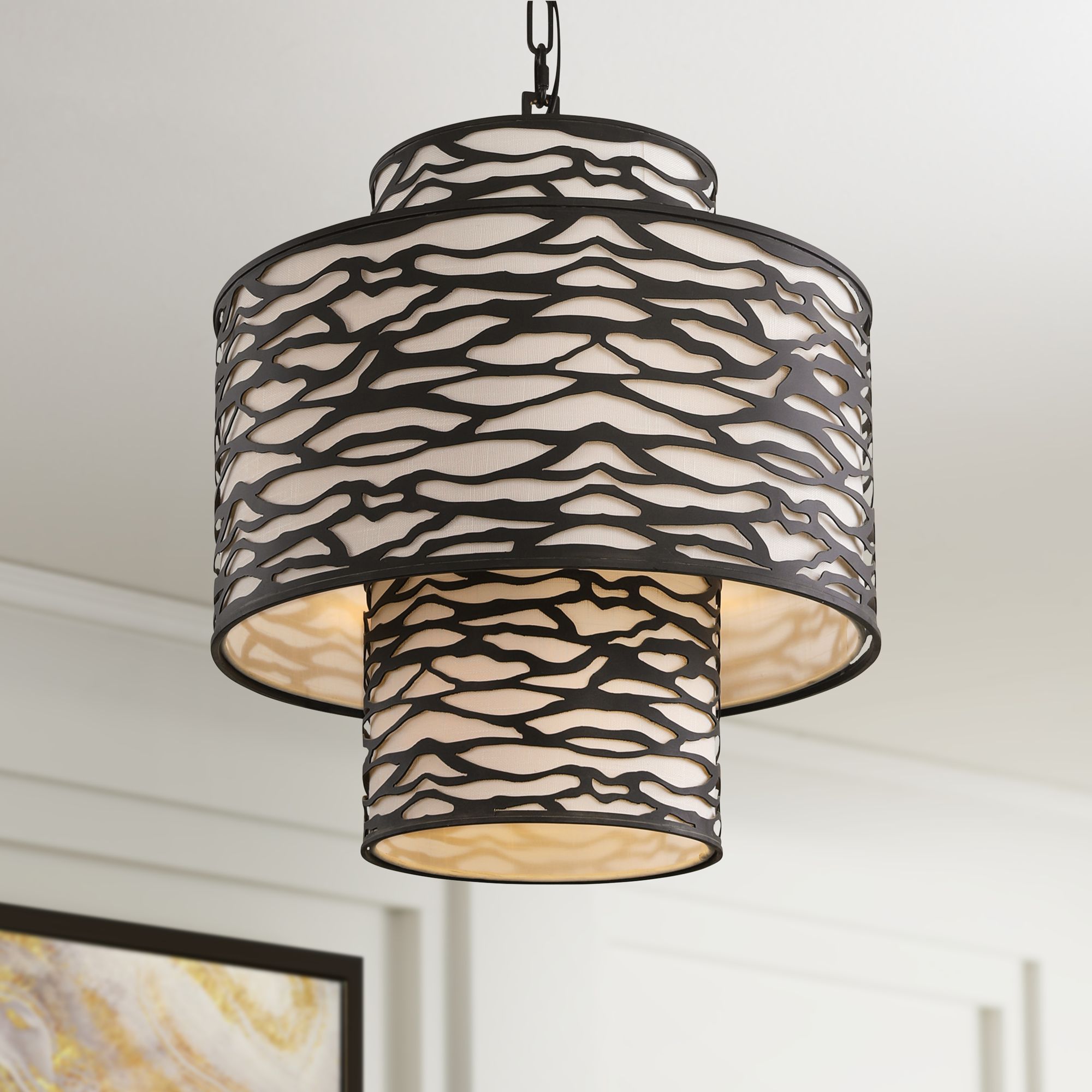 UltraLights Tambour 24"W Black Faux Alabaster 33.6w LED Pendant Light