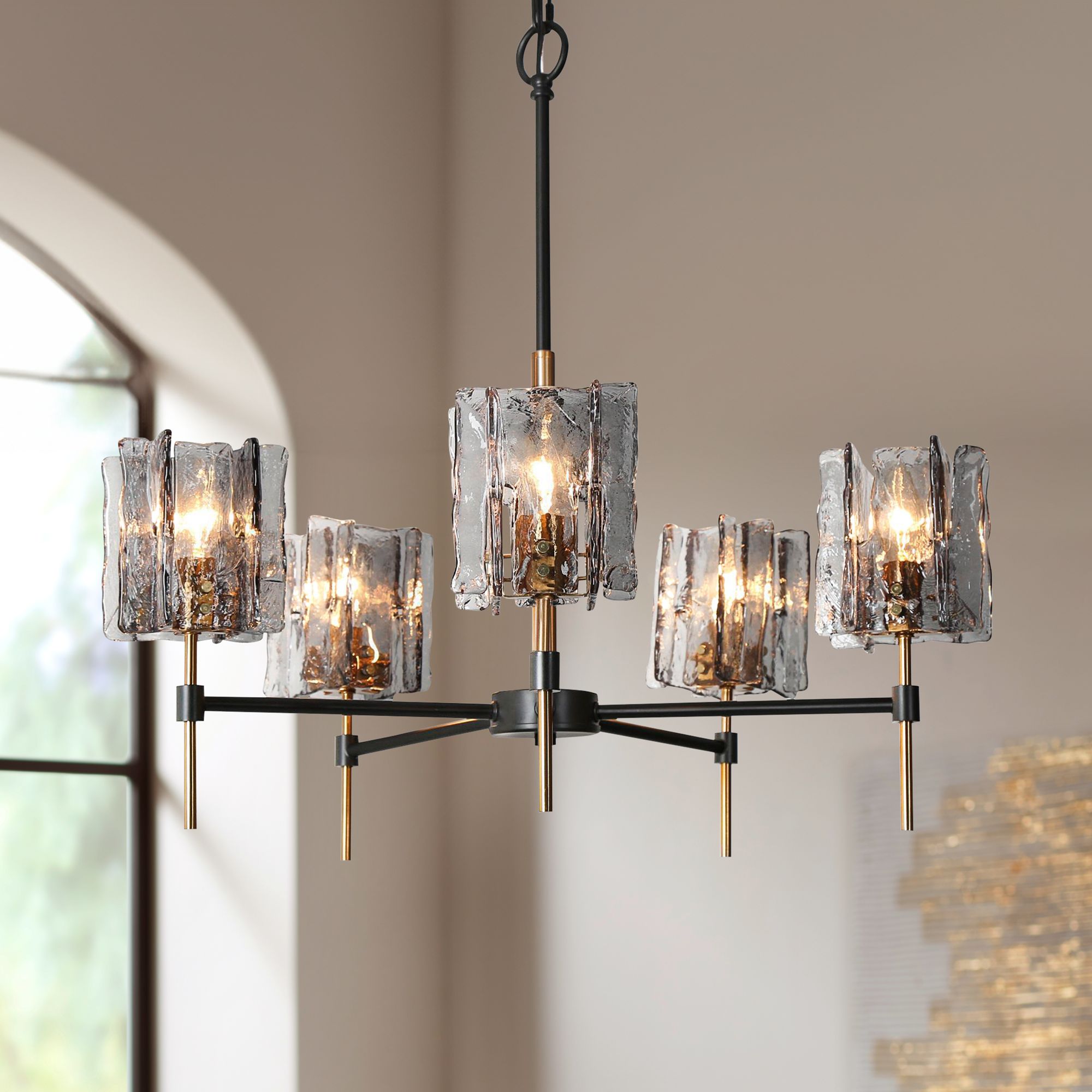 LNC Echonalyri 25" Wide Matte Black and Brass 5-Light Chandelier