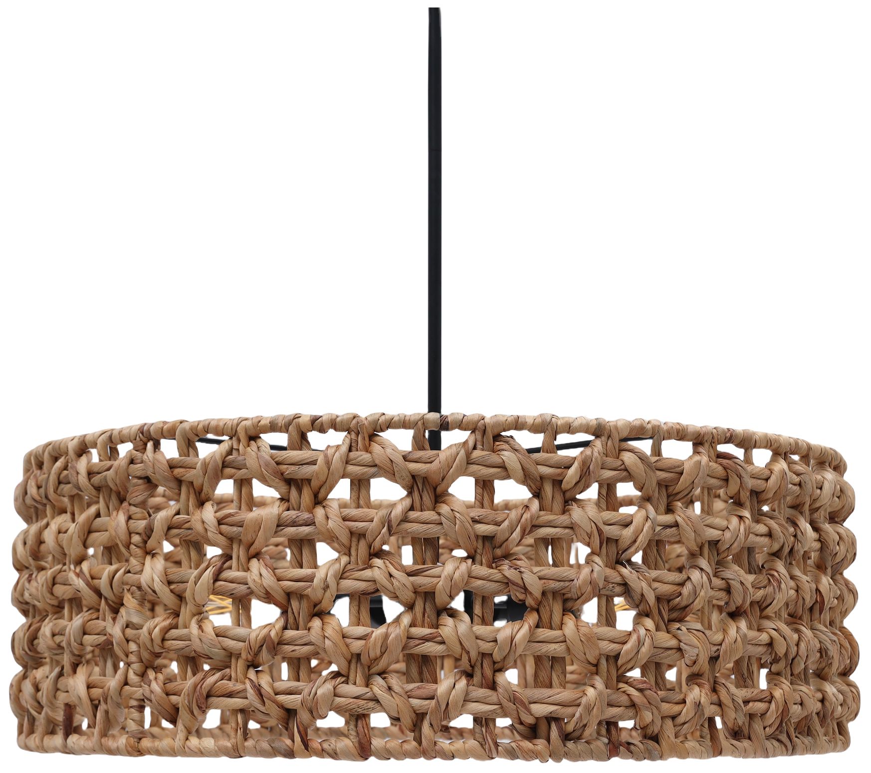 Carrie 26" Wide Matte Black and Rattan Drum Pendant Light