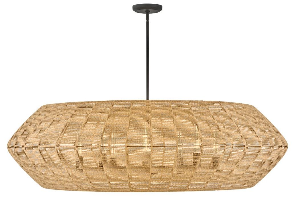 Lisa McDennon Luca 60"W Black w/ Woven Drum Shade Chandelier