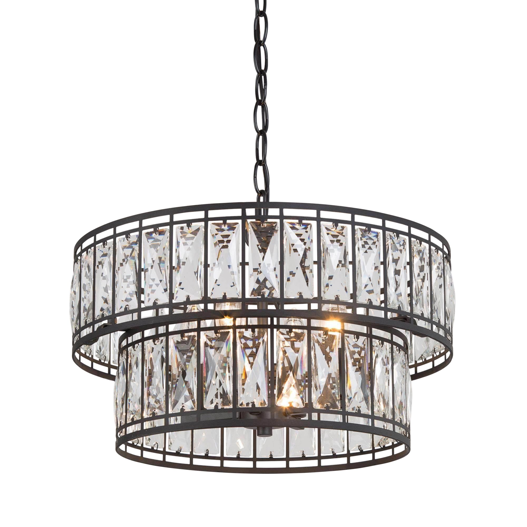 Polia 15 1/2" Wide Black 4-Light 2-Tier Drum Chandelier