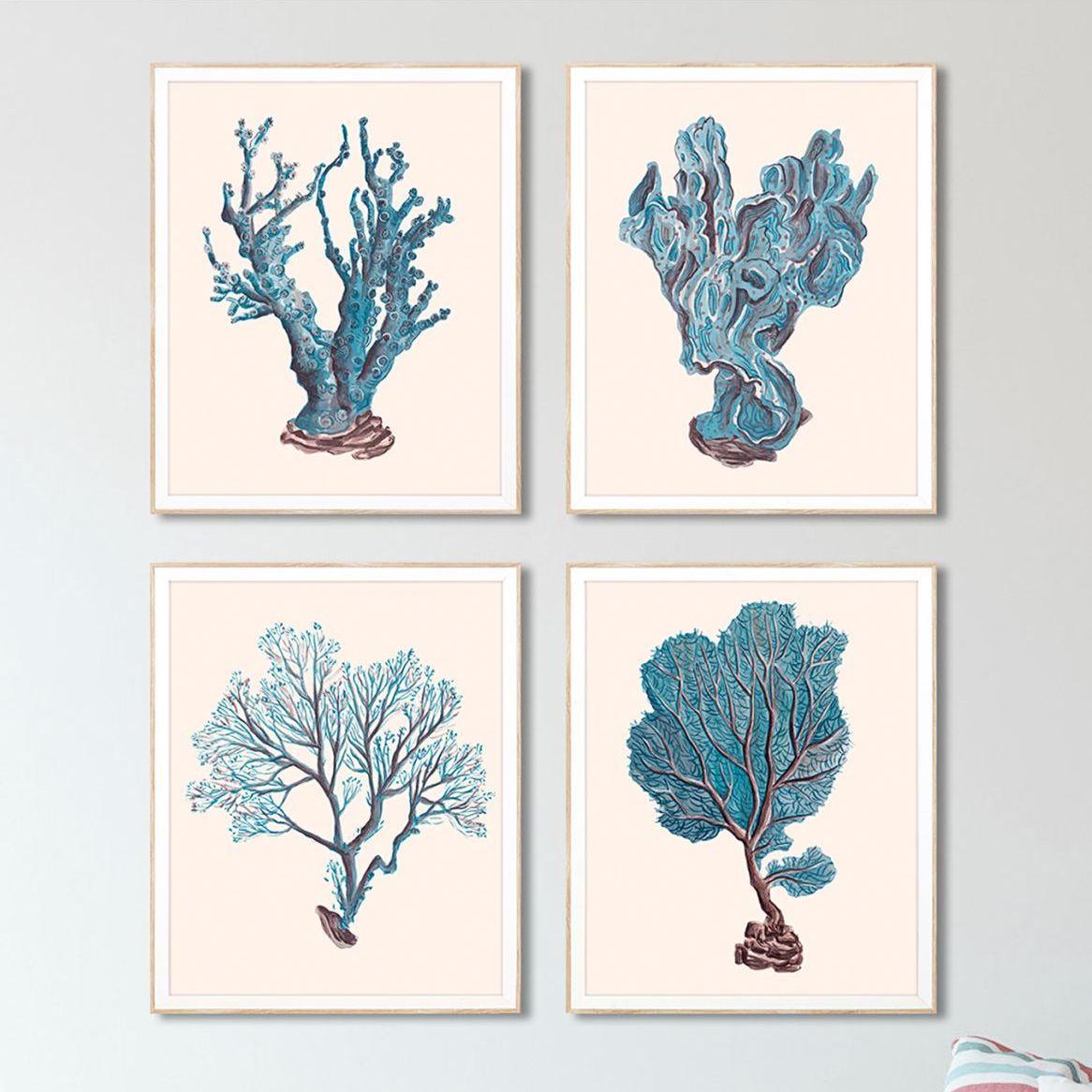 Indigo Reef 22" High Rectangular 4-Piece Framed Wall Art Set