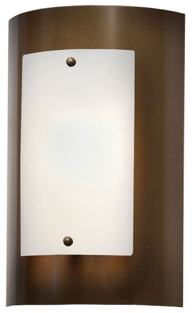 Banded Small Outdoor Sconce with Top Plate - Bronze - Opal and Seeded Glass