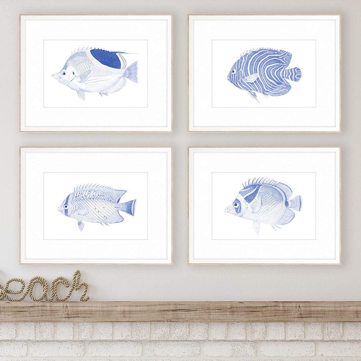 Blue Fish 28" Wide 4-Piece Giclee Framed Wall Art Set