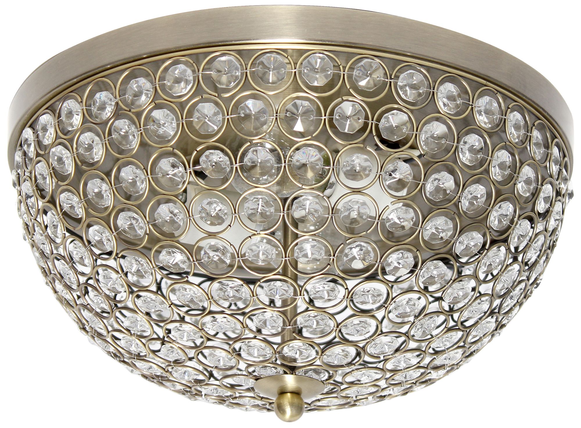 Kali 13" Wide Antique Brass Crystal 2-Light Ceiling Light