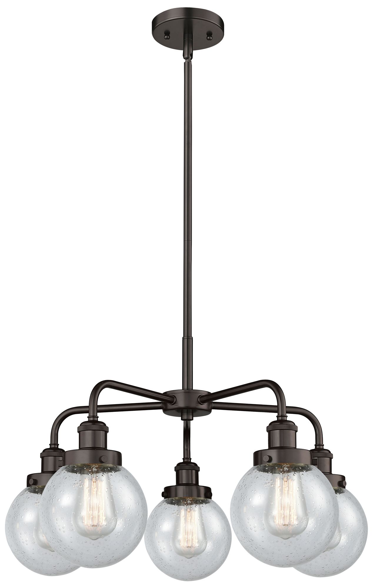Beacon 24"W 5 Light Oil Rubbed Bronze Stem Hung Chandelier w/ Seedy Sh