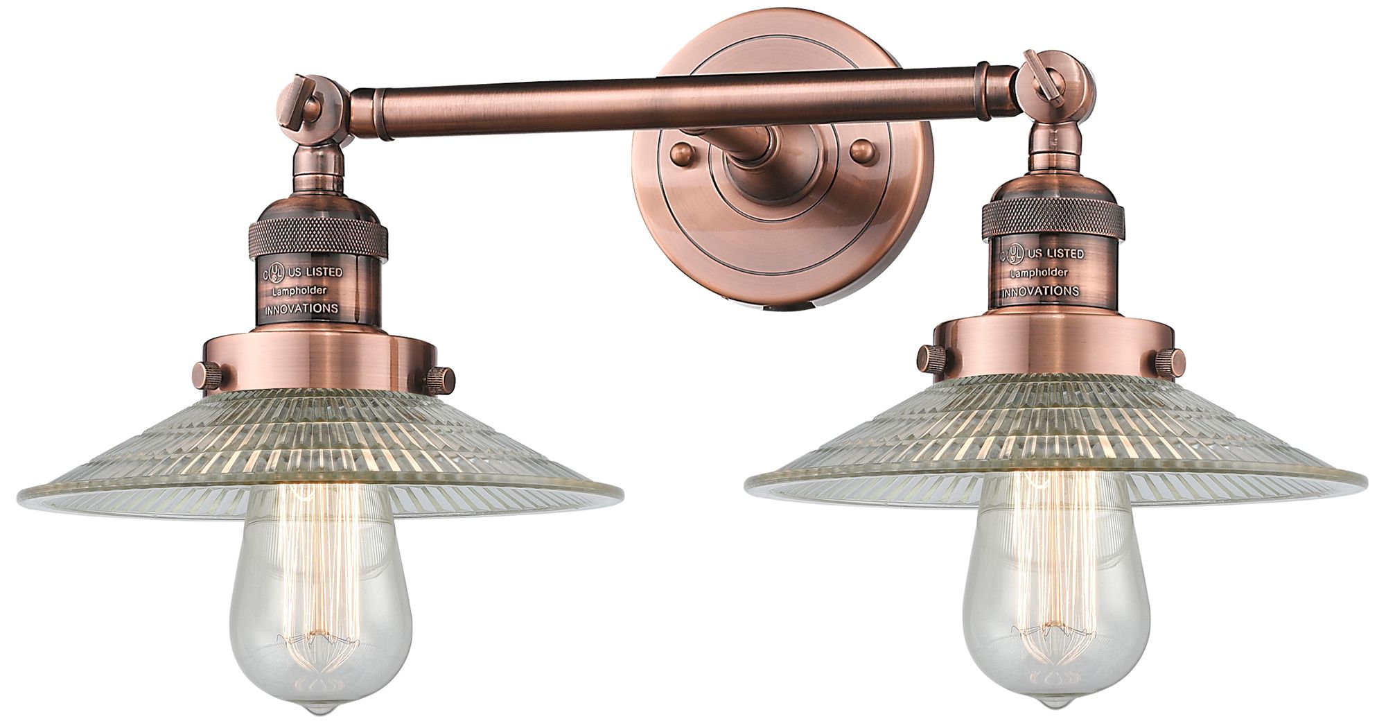 Halophane 2 Light 18" LED Bath Light - Copper - Clear Halophane Shade