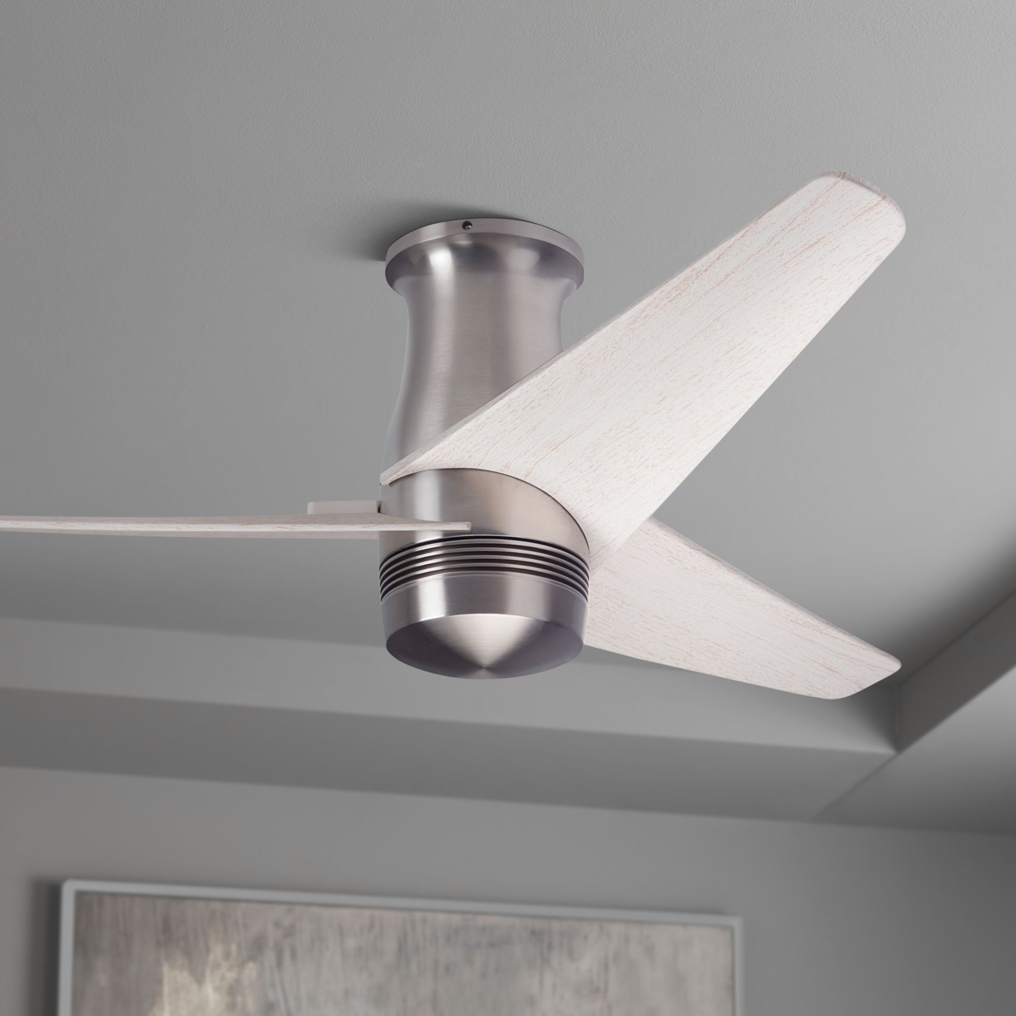 48" Modern Fan Velo DC Nickel Maple Damp Rated Hugger Fan with Remote