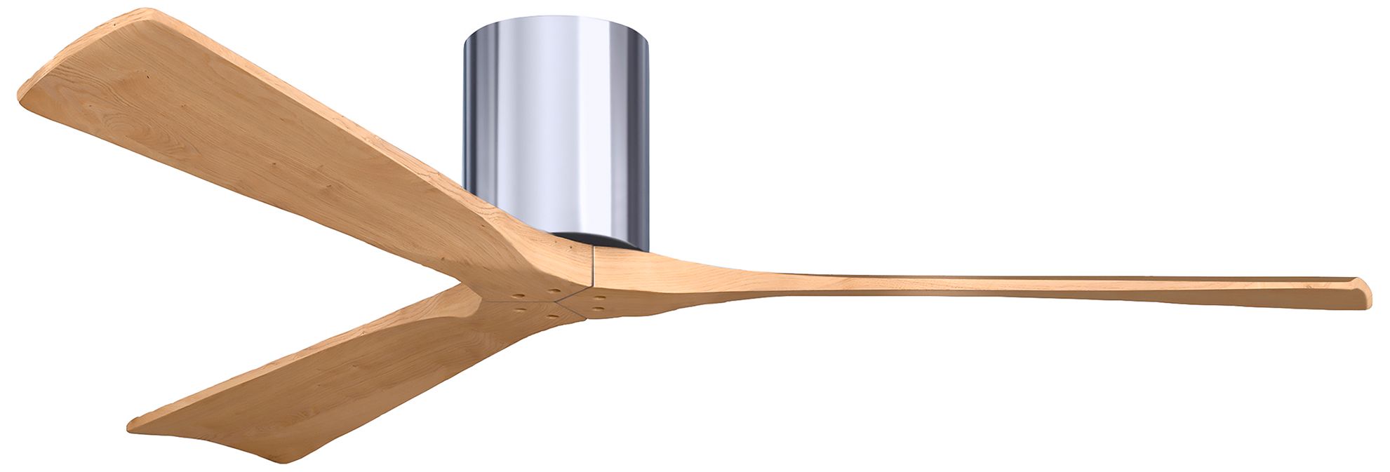 60" Irene-3H Polished Chrome and Light Maple Ceiling Fan