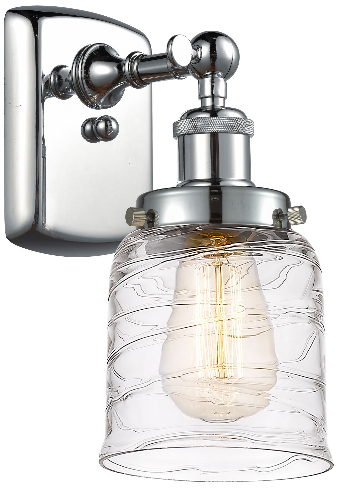 Ballston Urban Bell 5" LED Sconce - Chrome Finish - Deco Swirl Shade