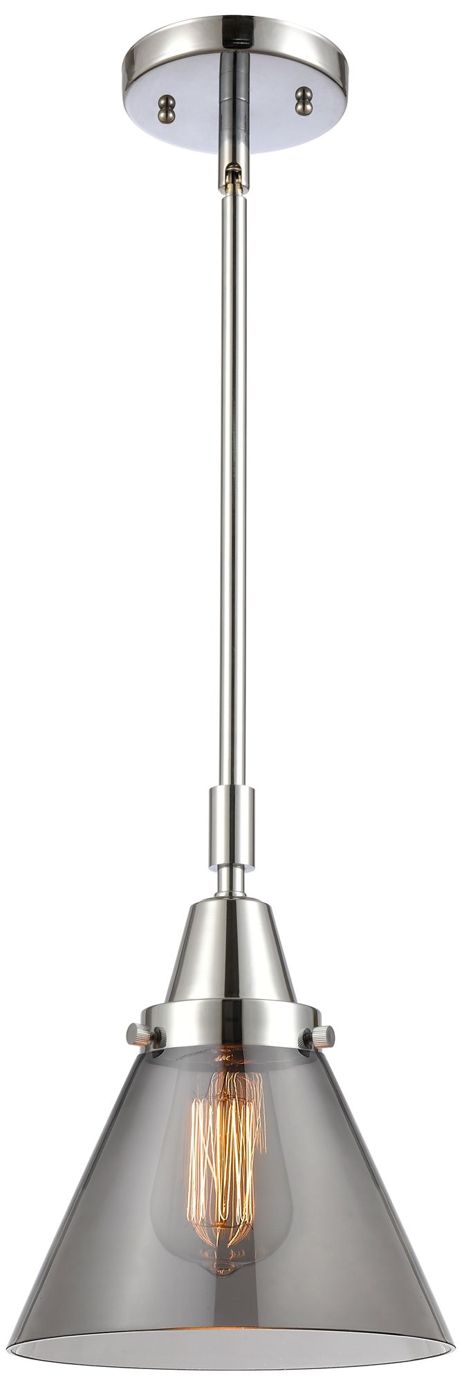 Caden Cone 8"W Polished Chrome Stem Hung Mini Pendant w/ Plated Smoke