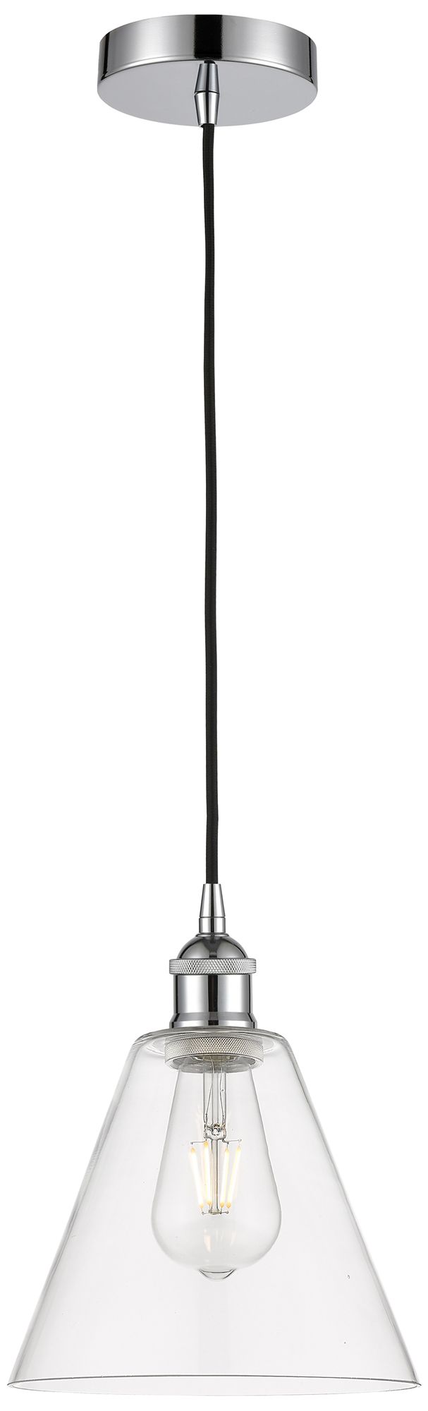Edison Glass Cone 8" Polished Chrome Cord Hung Mini Pendant w/ Clear S