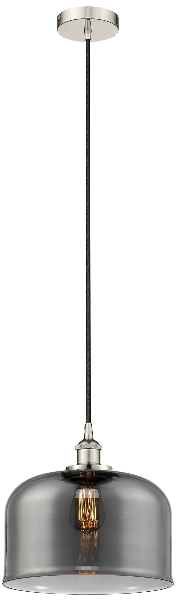 Bell 12" LED Mini Pendant - Polished Nickel - Plated Smoke Shade