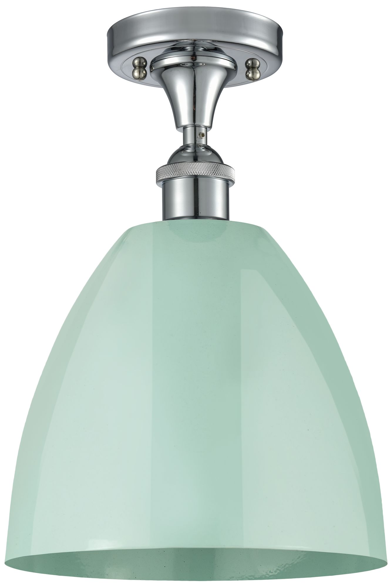 Plymouth Dome 9" Wide Polished Chrome Semi Flush Mount w/ Seafoam Shad
