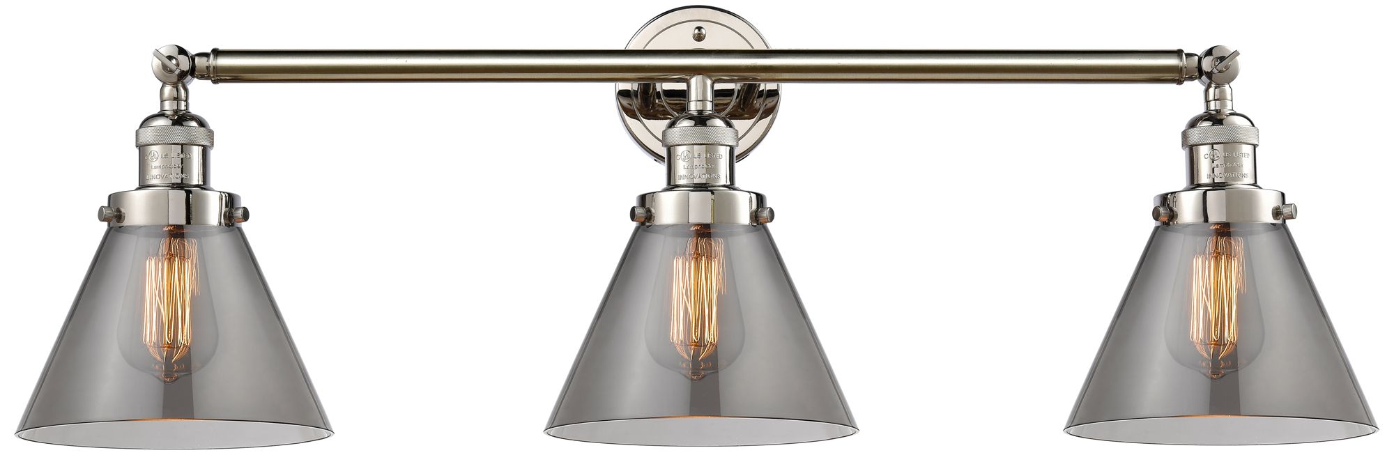 Cone 3 Light 32" LED Bath Light - Polished Nickel - Plated Smoke Shade