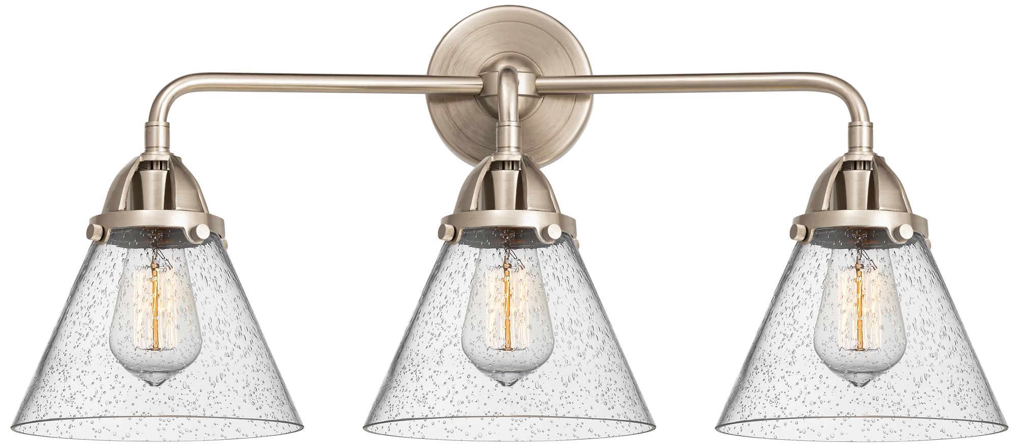 Nouveau 2 Cone 8" 3 Light 26" LED Bath Light - Brushed Satin Nick