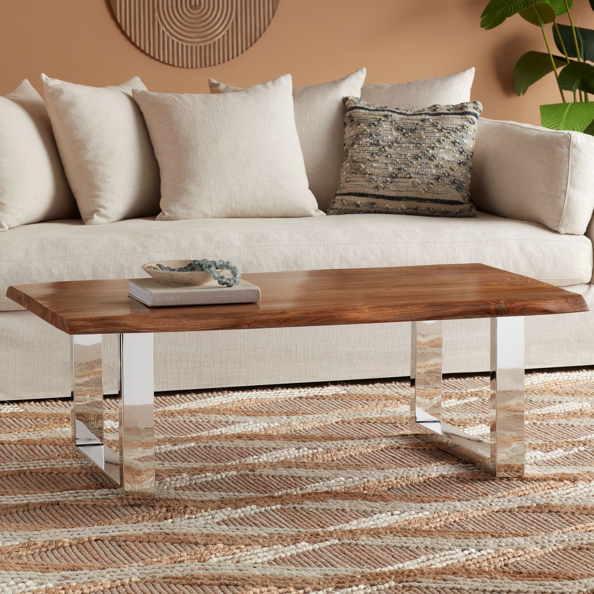 Raw Edge Brownstone 54" Chrome and Wood Cocktail Table