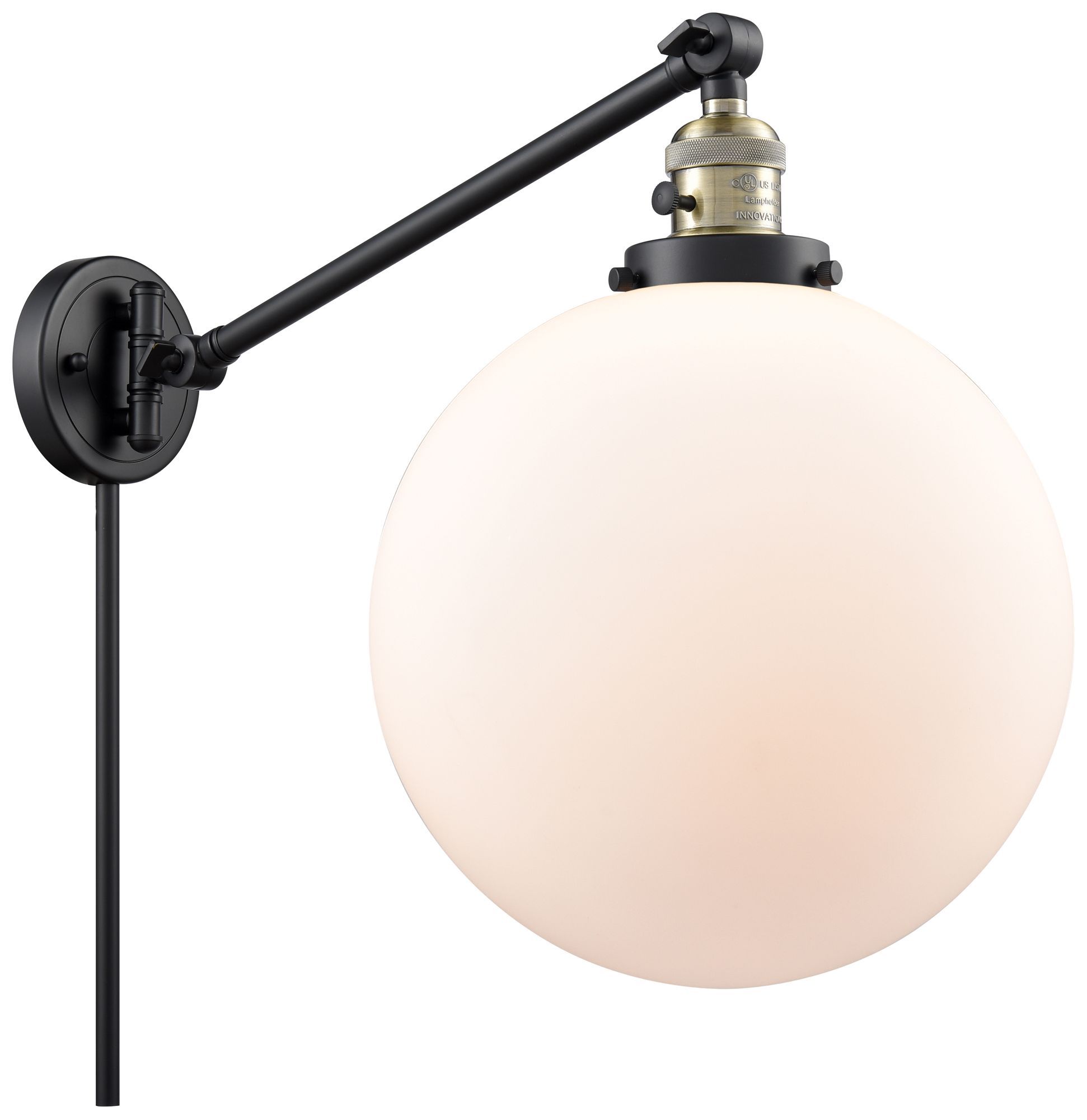 Beacon 12" Black Antique Brass LED Swing Arm With Matte White Shade