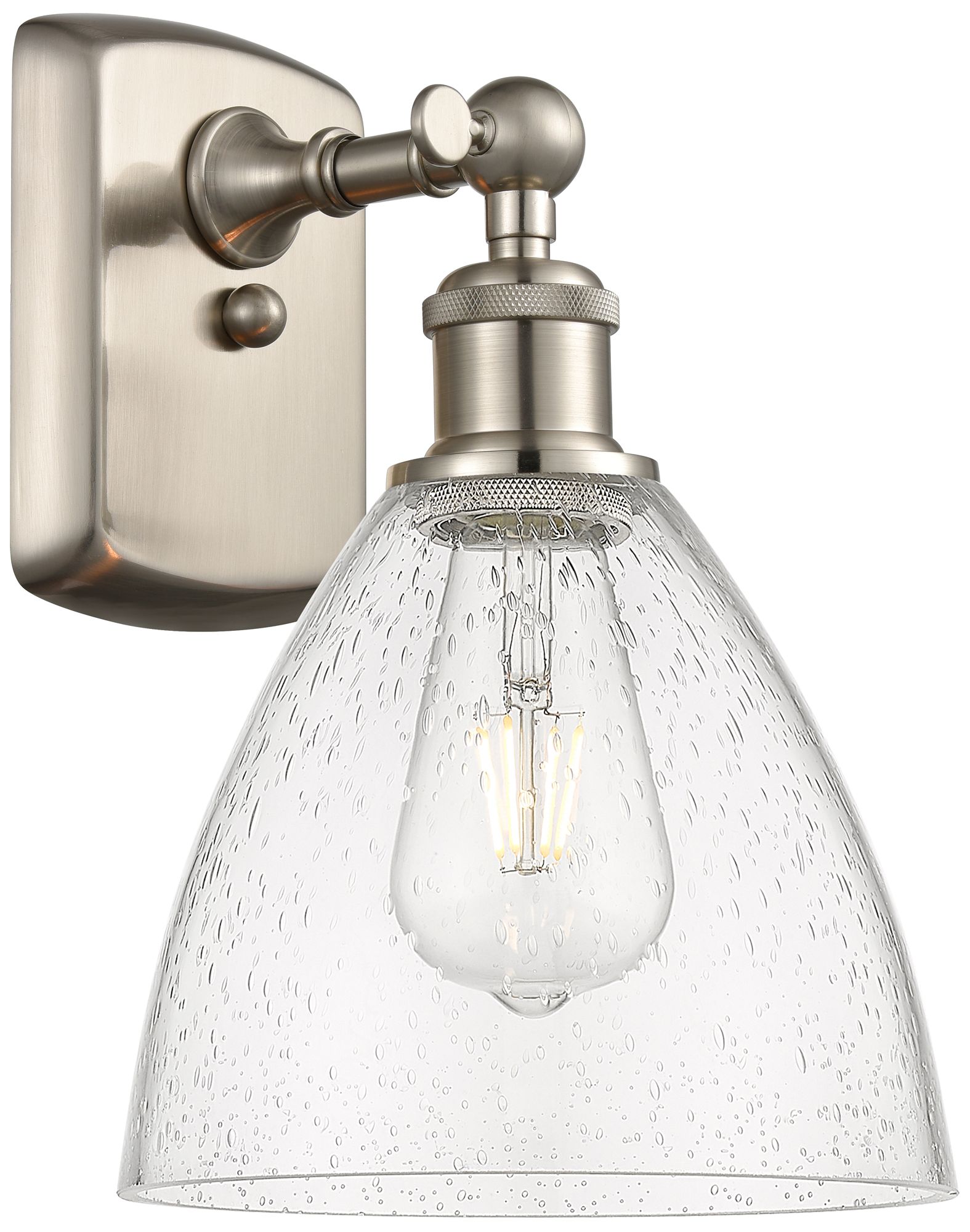 Bristol Glass 7.5" 8" LED Sconce - Nickel Finish - Seedy Shade