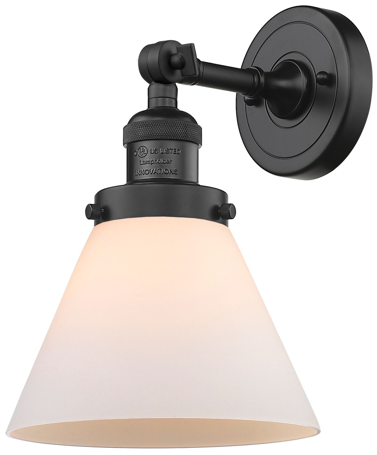 Franklin Restoration Cone 8" LED Sconce - Black Finish - Matte White S