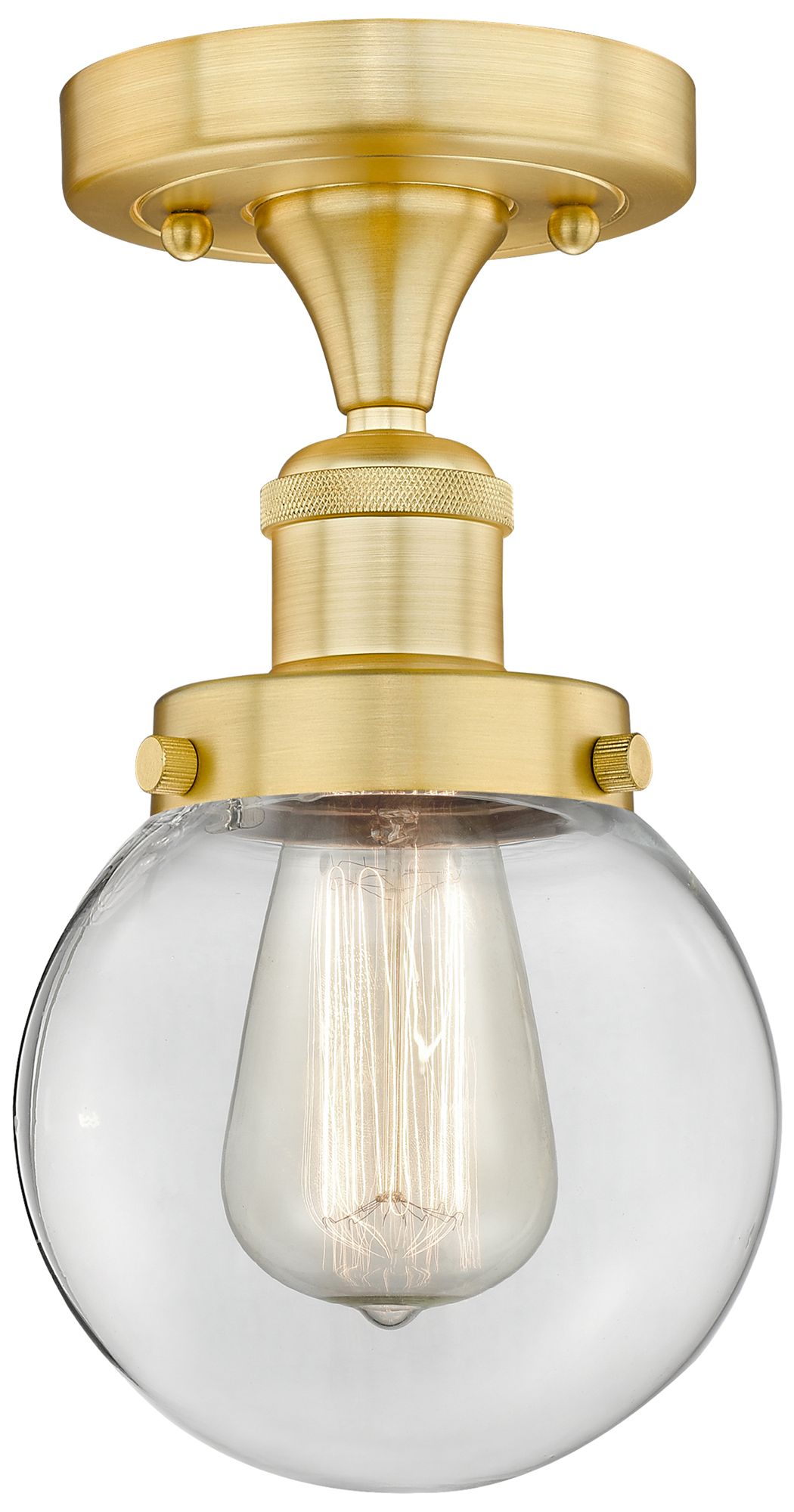 Beacon 6" Wide Satin Gold Semi.Flush Mount With Clear Glass Shade