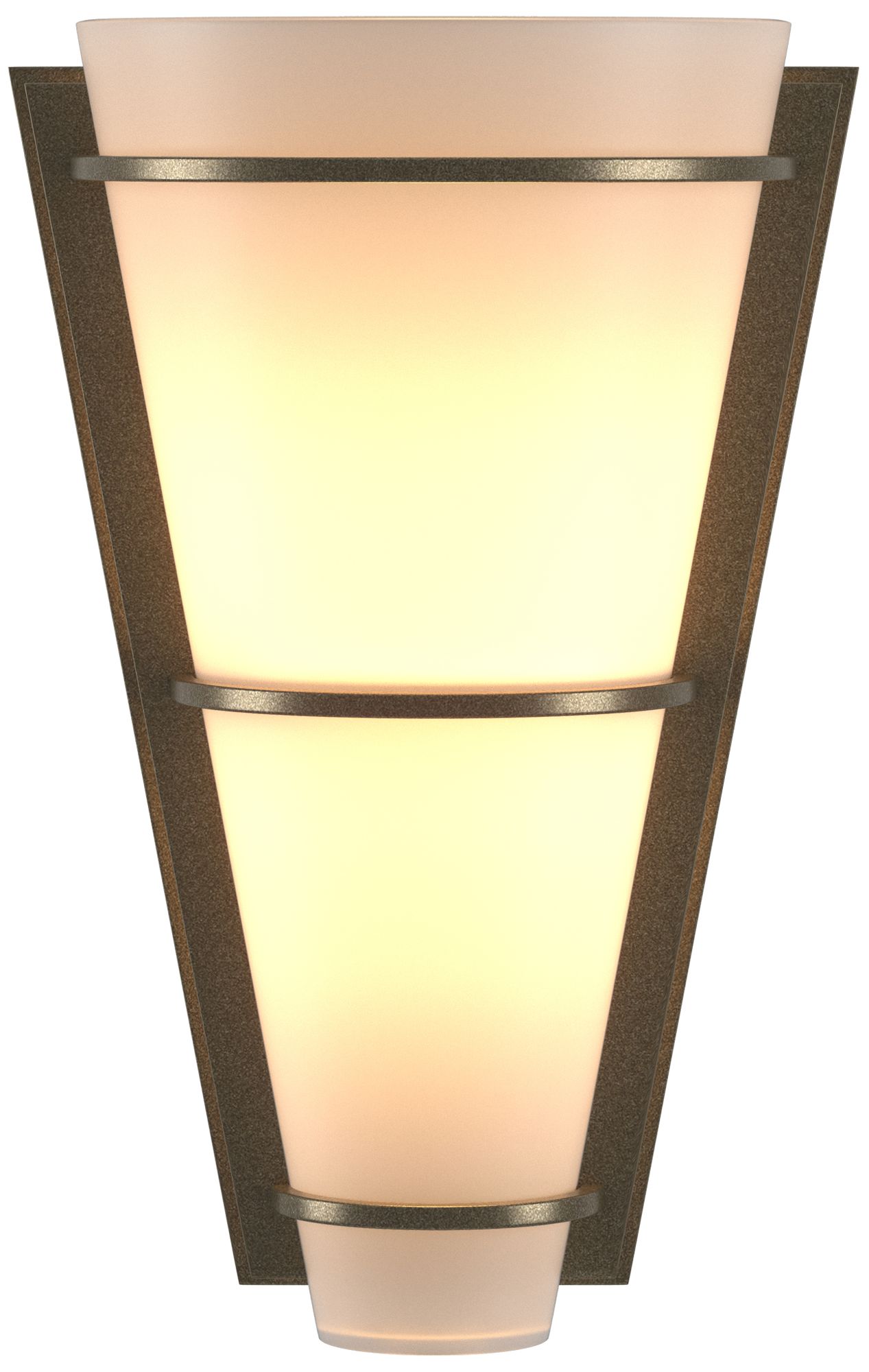 Suspended Half Cone 10" High Soft Gold Sconce With Opal Glass Shade