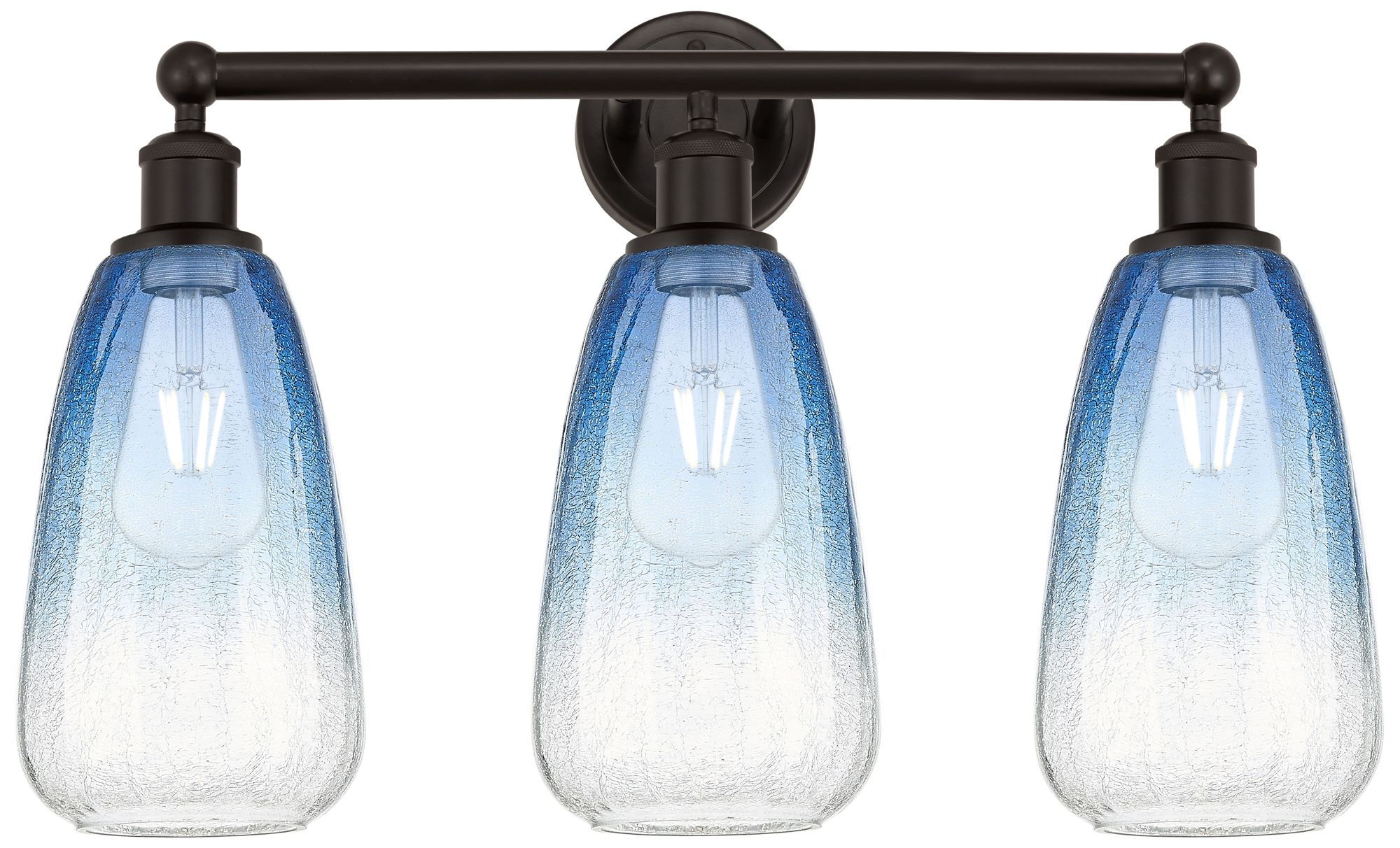 Ballston Brookhaven Almond 26"W 3-Lt Oiled Bronze Vanity w/ Sapphire Shade