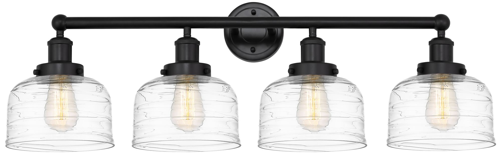 Edison Large Bell 34" 4-Light Matte Black Bath Light w/ Deco Swirl Sha