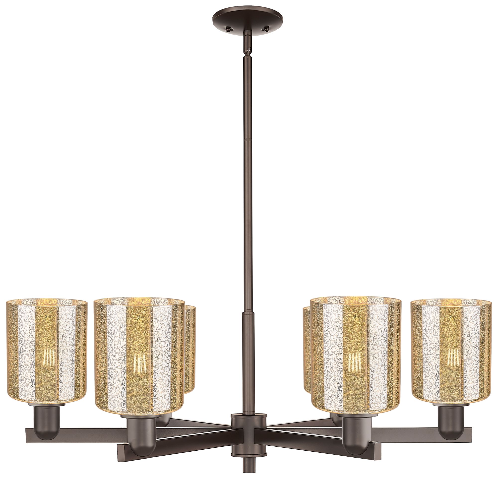 Arcadia Cobbleskill 35"W 6-Lt Oiled Bronze Stem Chandelier w/ Mercury Shade