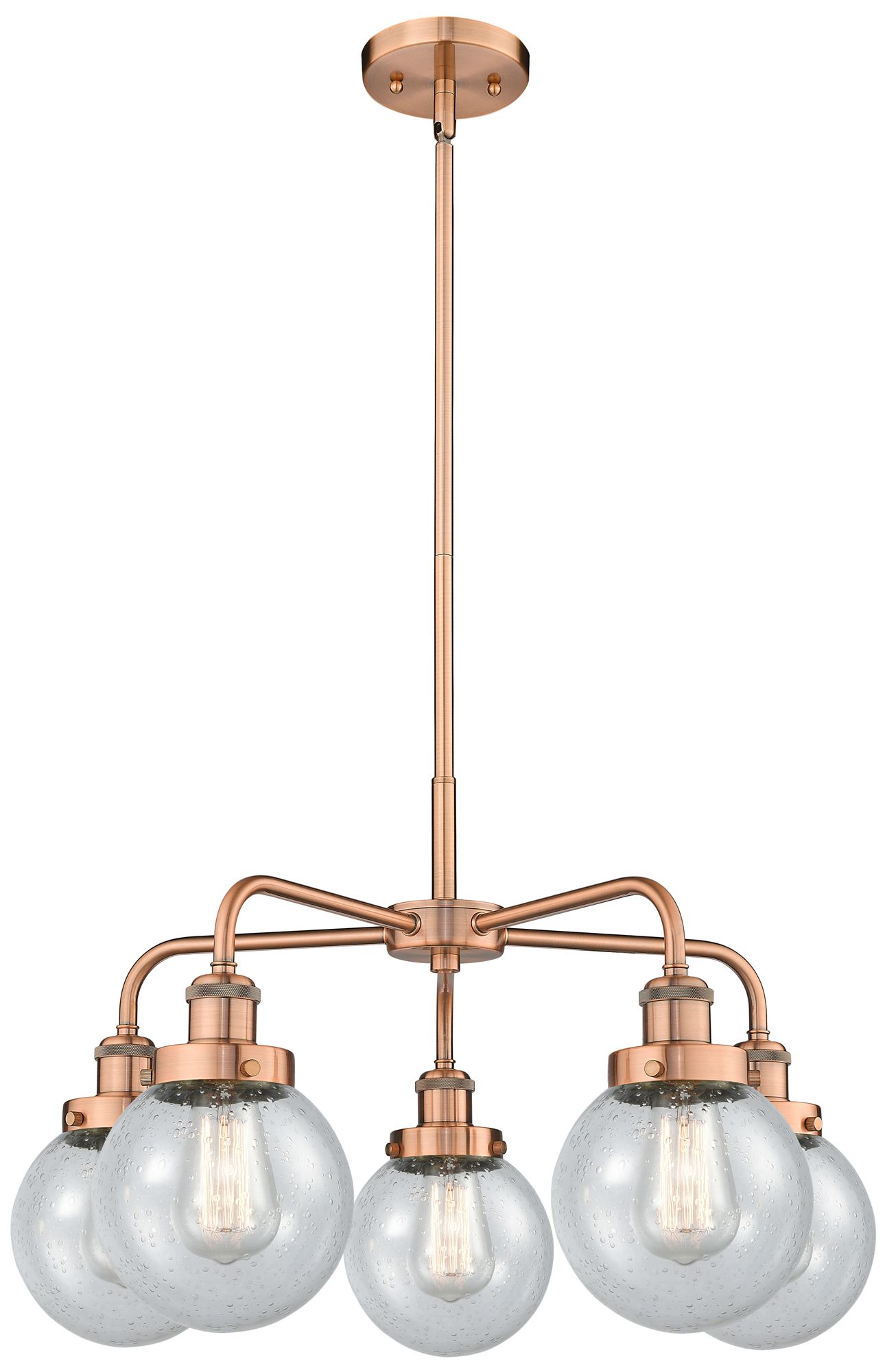 Beacon 24"W 5 Light Antique Copper Stem Hung Chandelier w/ Seedy Shade