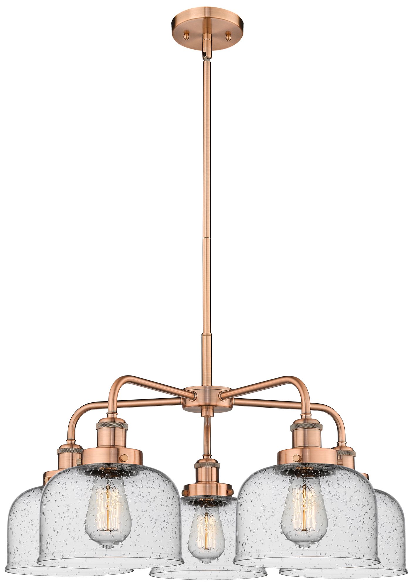 Bell 26"W 5 Light Antique Copper Stem Hung Chandelier w/ Seedy Glass S