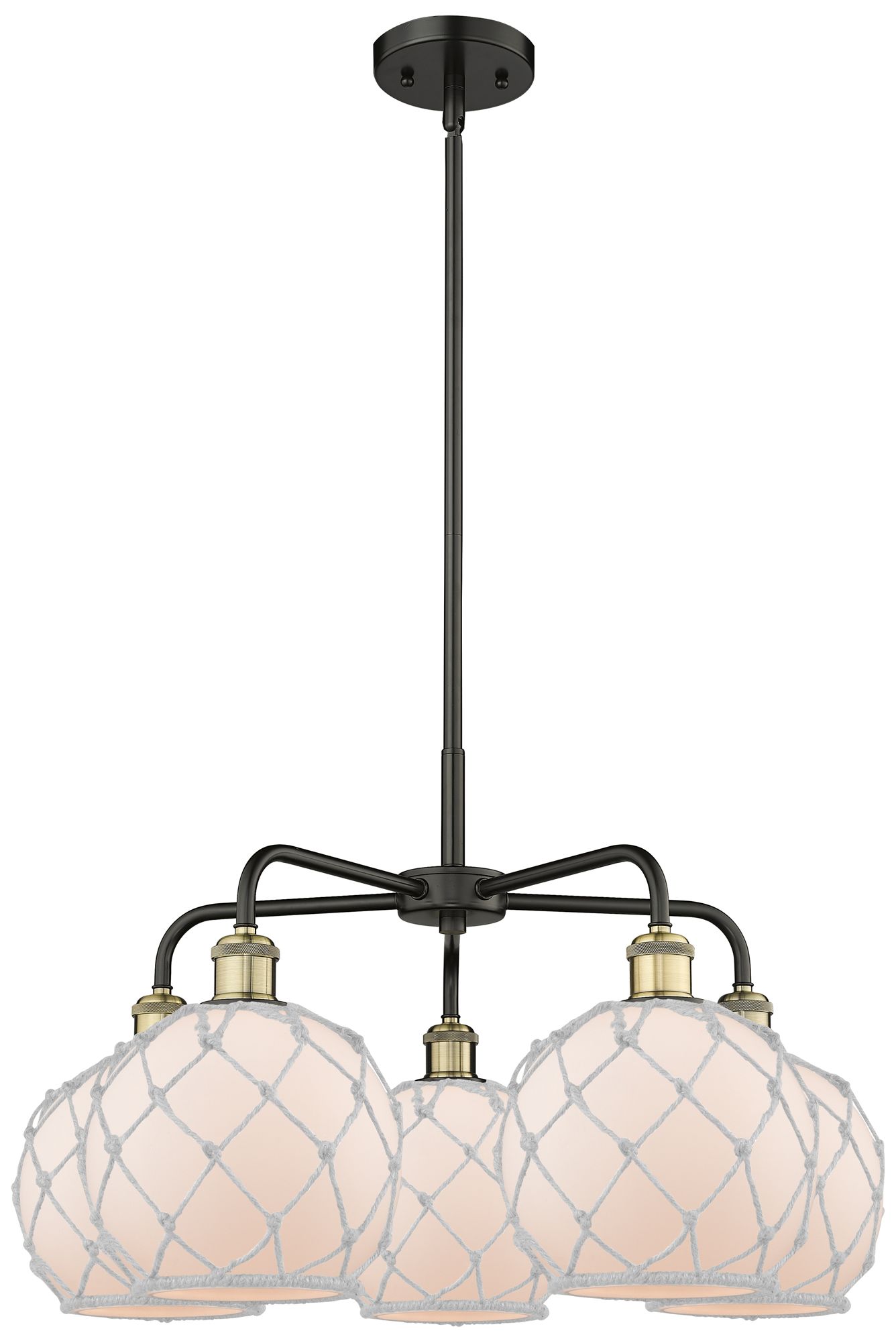 Ballston Farmhouse 27"W 5 Light Black Brass Stem Chandelier w/ White Shade