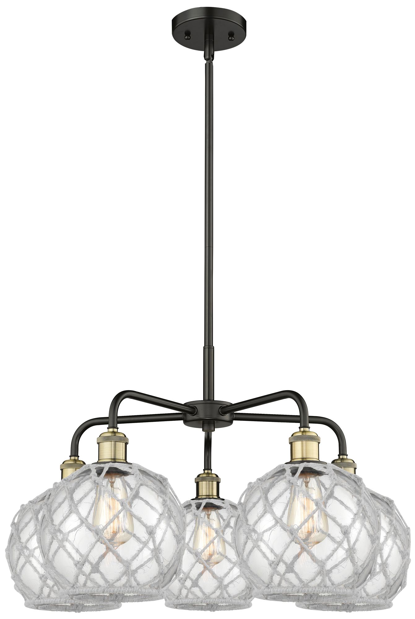Ballston Farmhouse 27"W 5-Lt Black Brass Chandelier w/ Clear White Shade