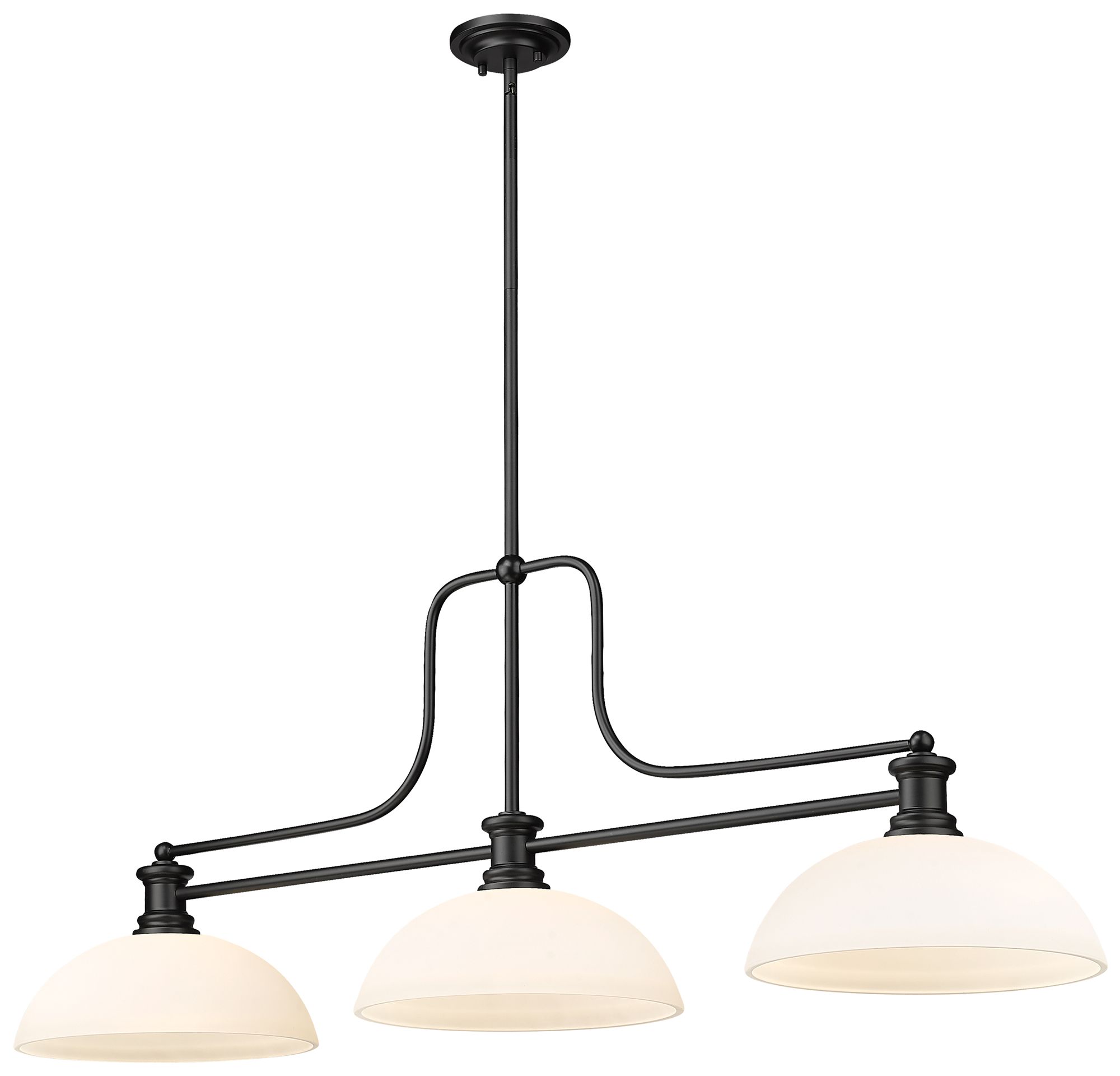Melange 52"W Black 3-Light Billiard Pendant w/ Opal Glass