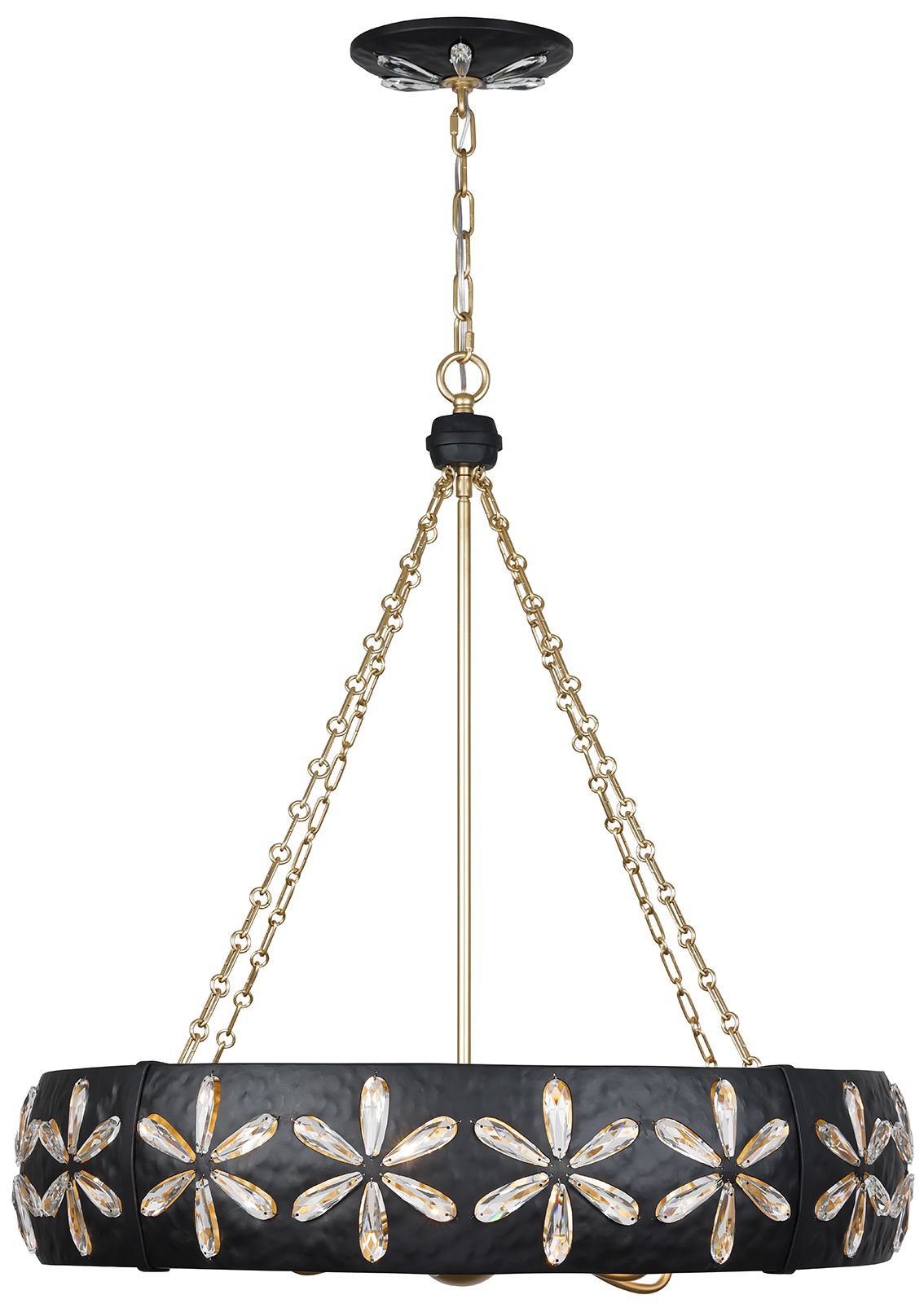 Roxton 25" Wide Matte Black and Brass 4-Light Chandelier