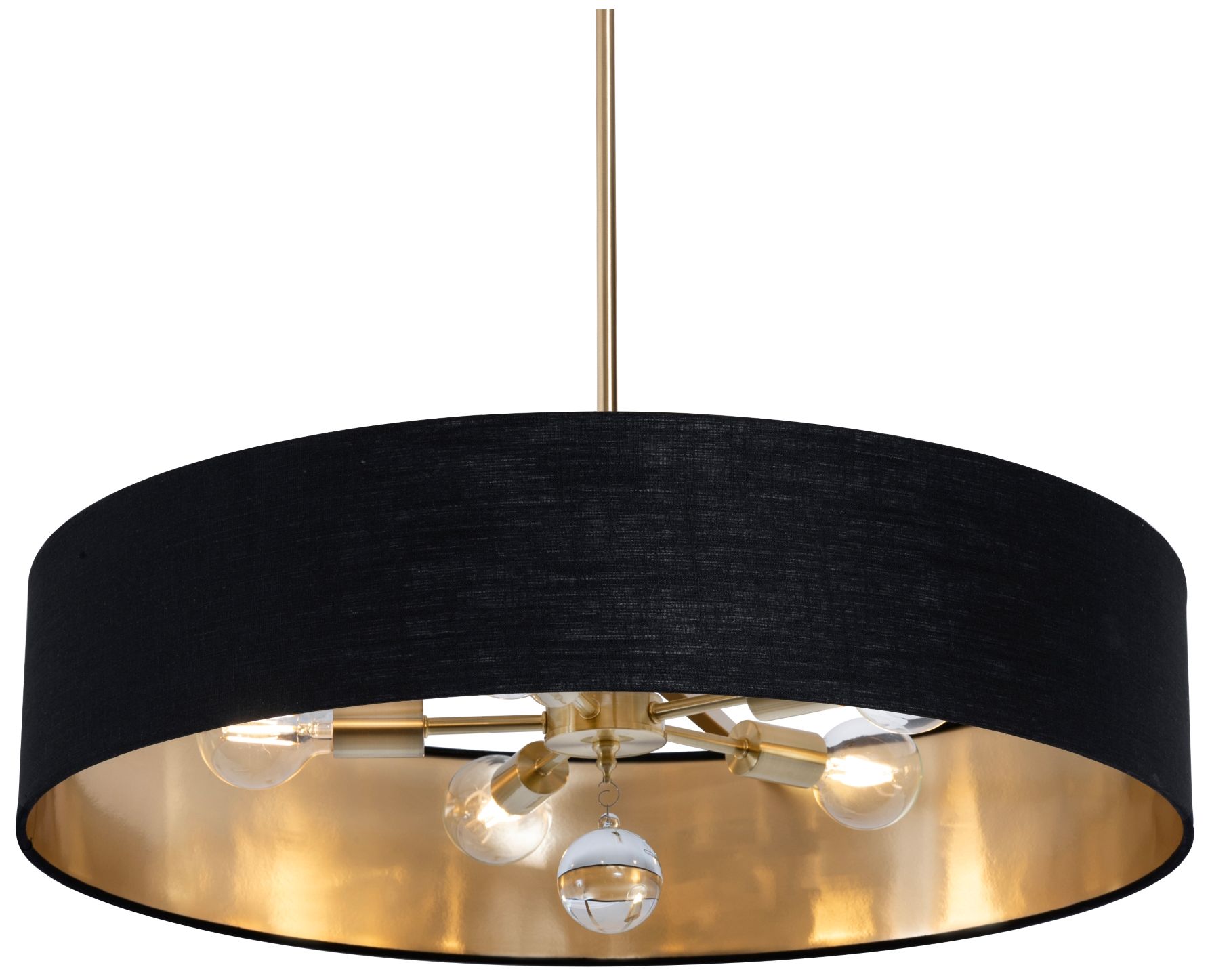 Celine 30" Wide Black and Satin Brass 5-Light Drum Pendant