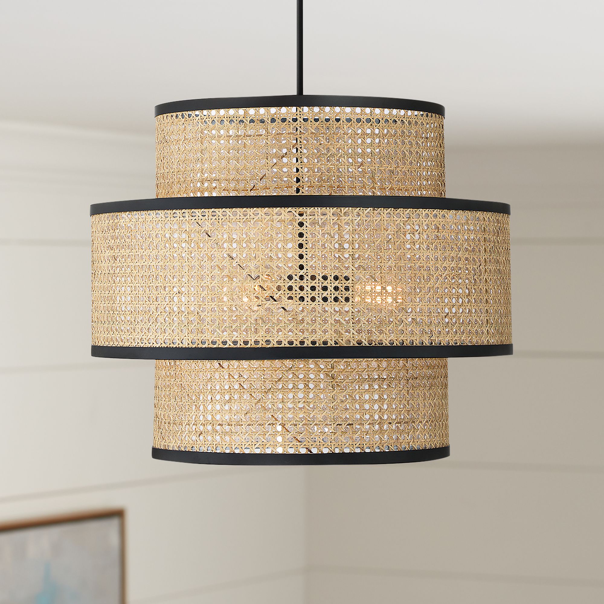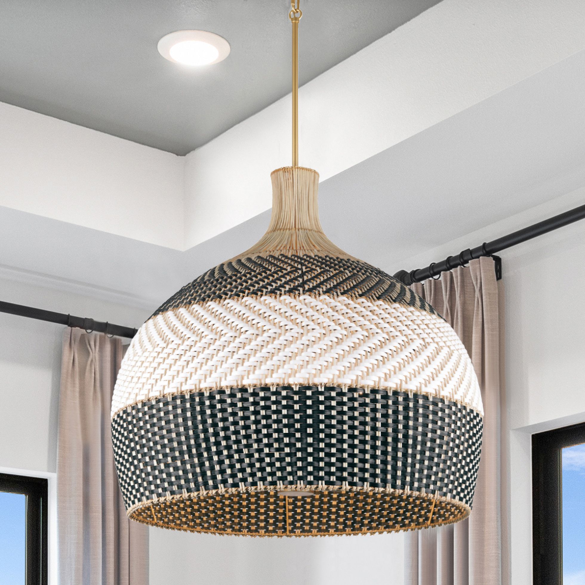 Crystorama Zanzibar 26" Wide 6-Light Black and Natural Rattan Pendant