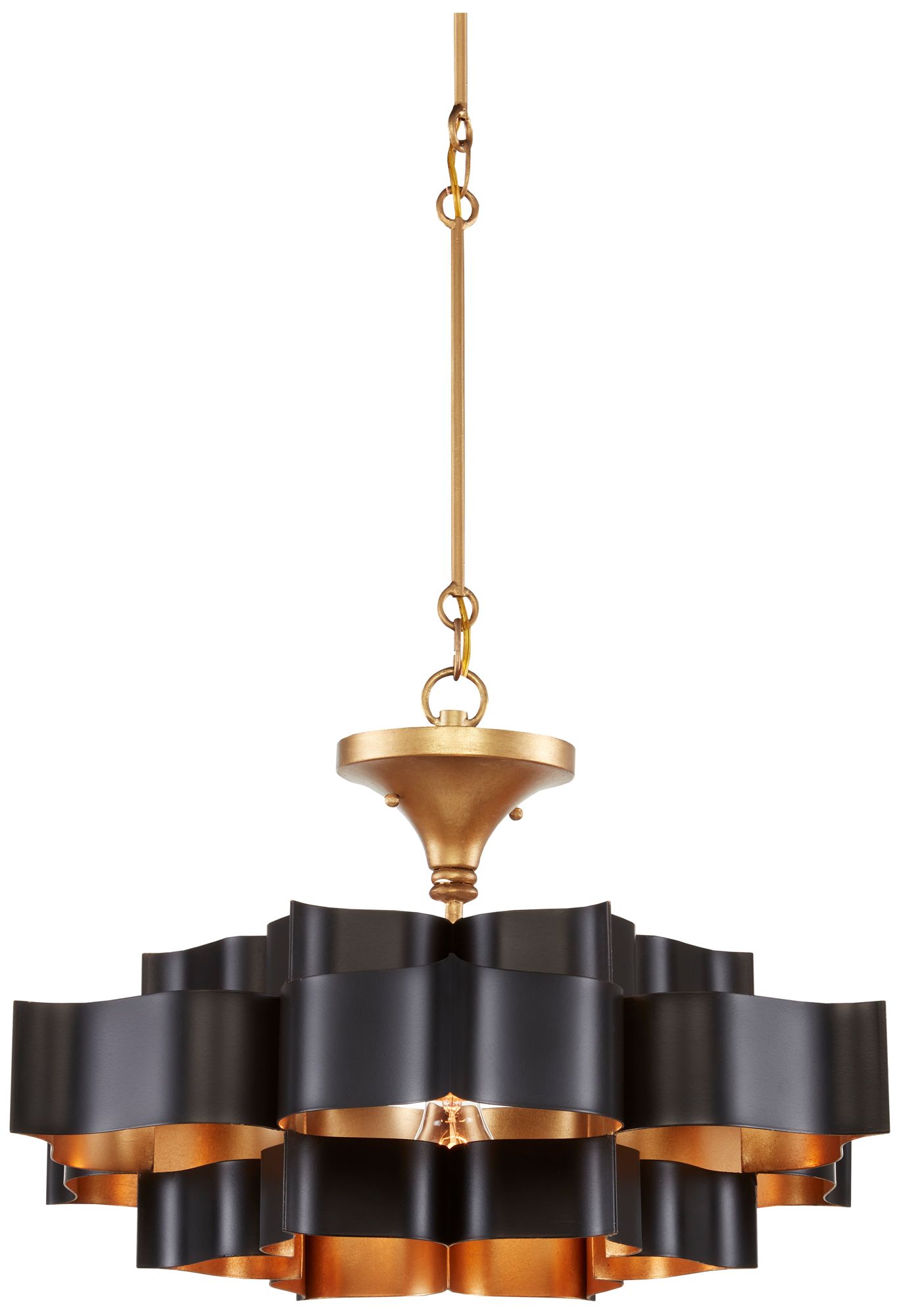Currey & Company Grand Lotus 20 1/4" Black Gold Small Chandelier