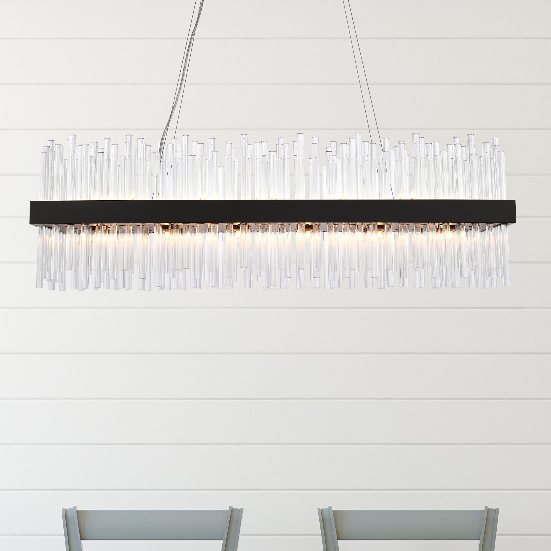 Willow 48"W Matte Black Linear Pendant Light w/ Clear Glass