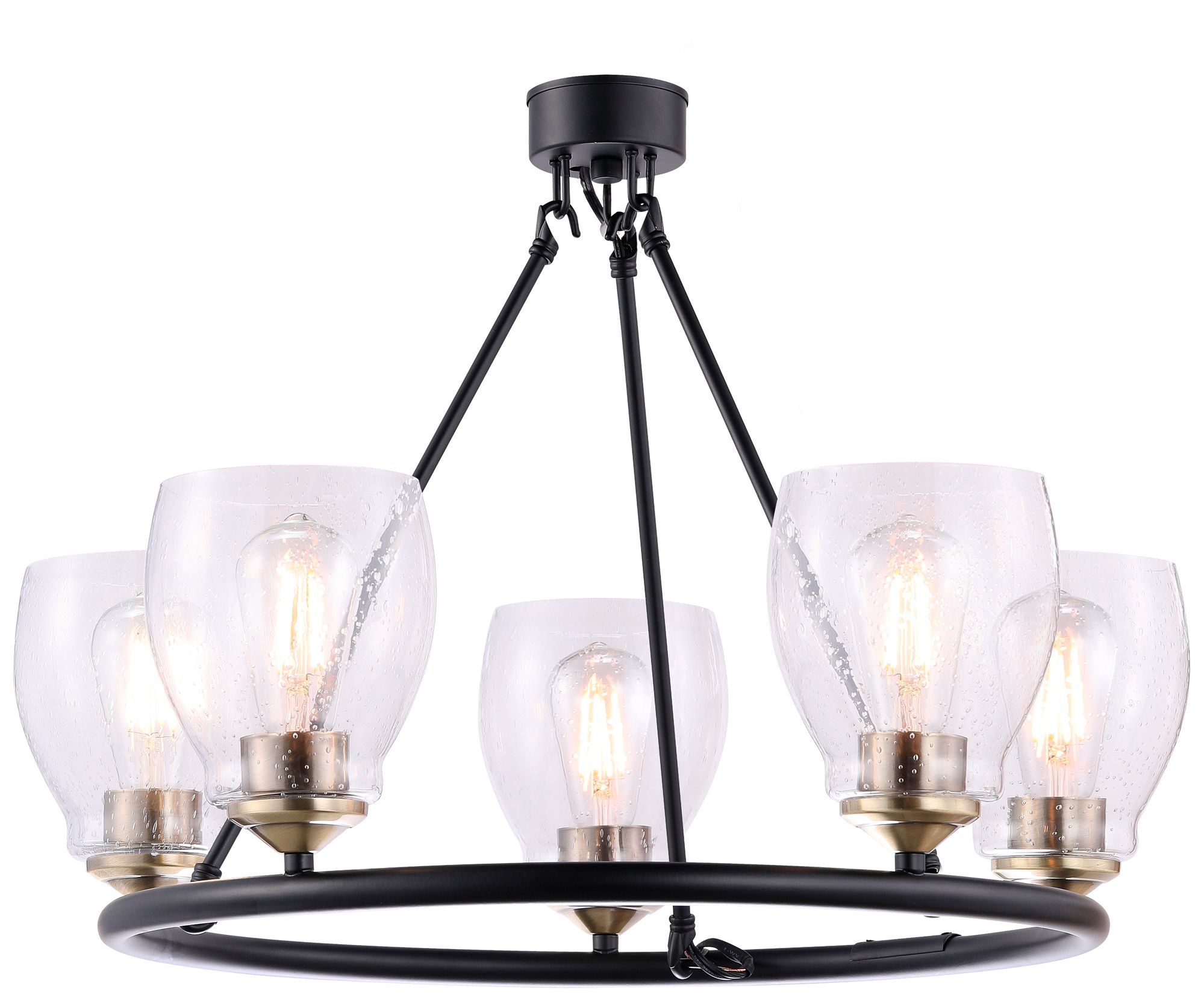 Winsley 24"W Coal Black and Stained Brass 5-Light Chandelier