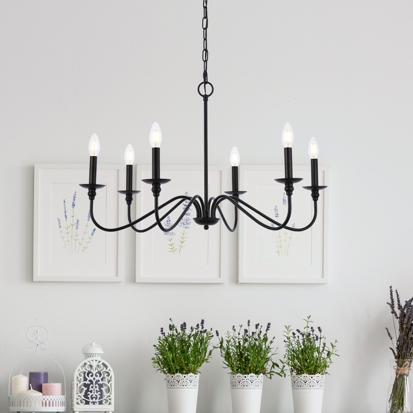 Elegant Lighting Rohan 30" Matte Black 6-Light Candelabra Chandelier