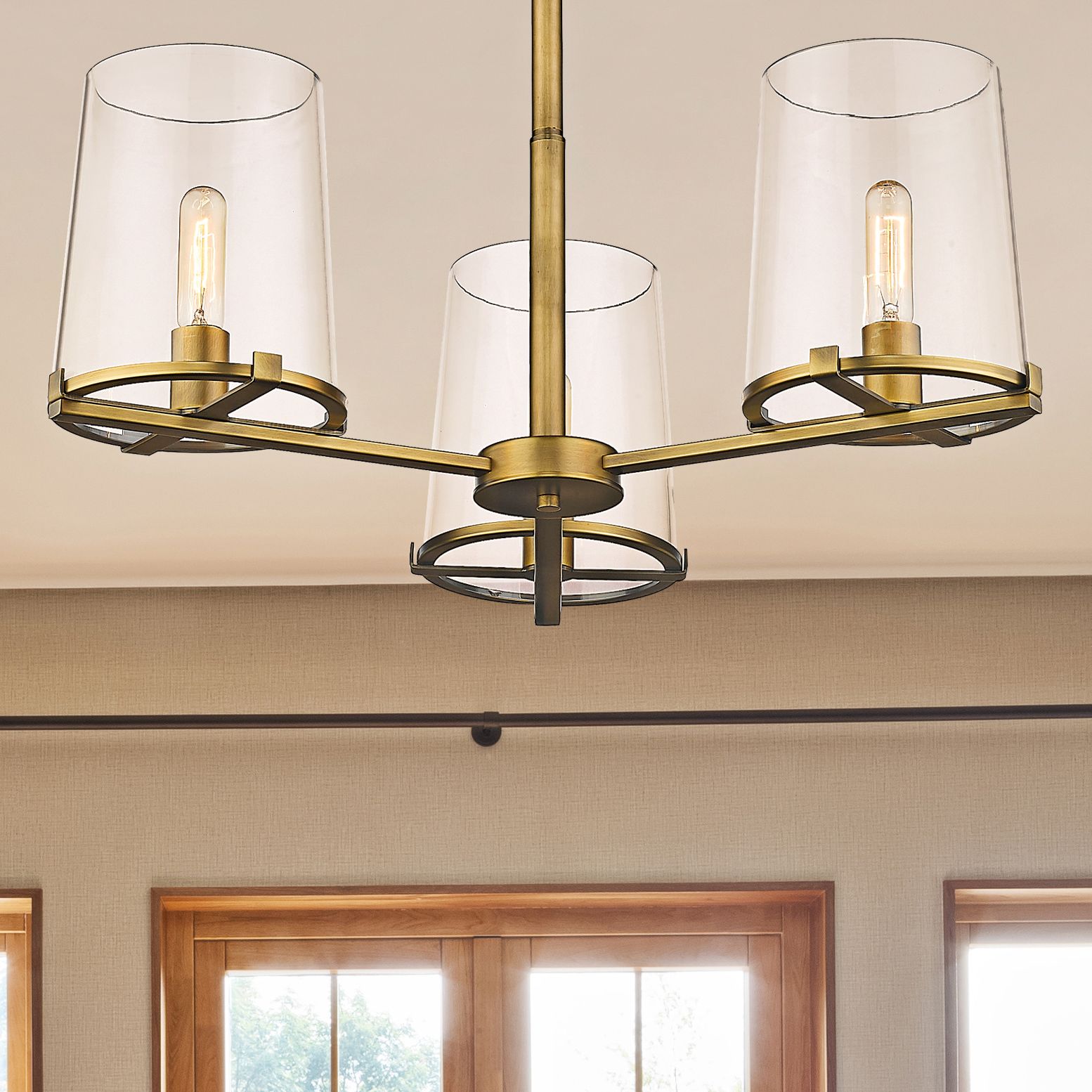 Callista 28" Wide Rubbed Brass 3-Light Chandelier