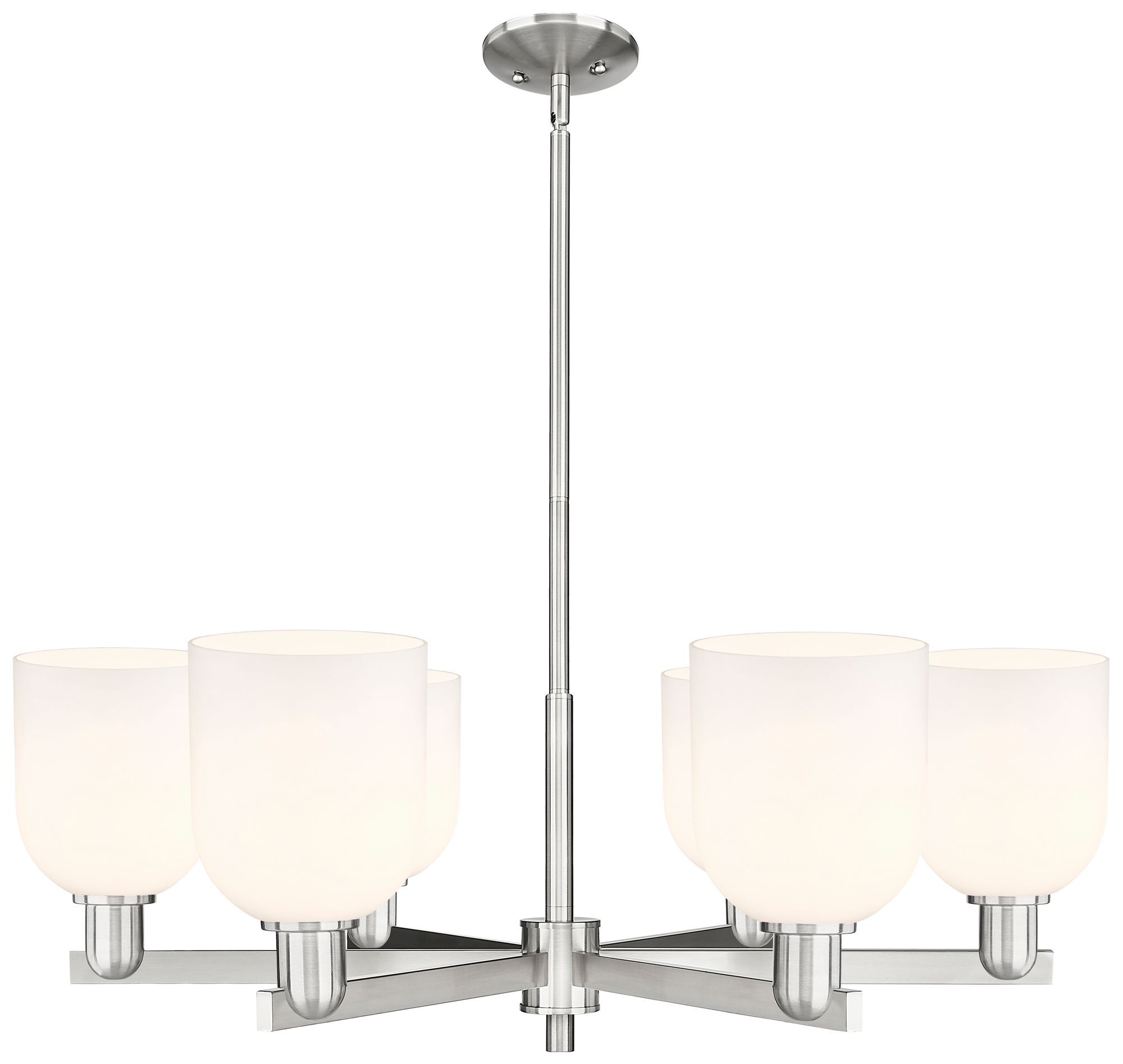 Arcadia Bella 35"W 6 Light Satin Nickel Stem Chandelier w/ White Shade