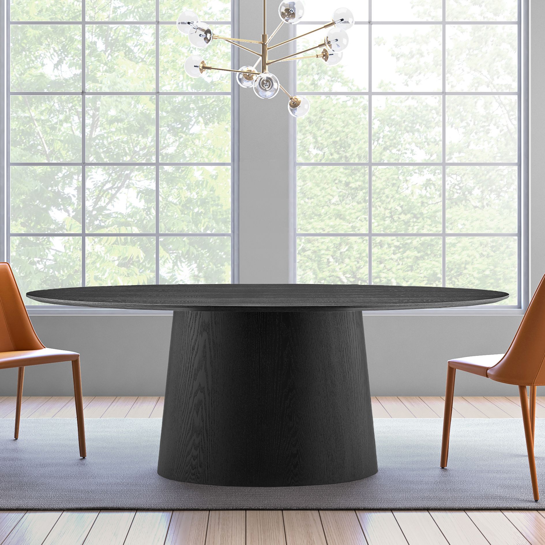 Wesley 53"W Ash Veneered Matte Black Round Dining Table