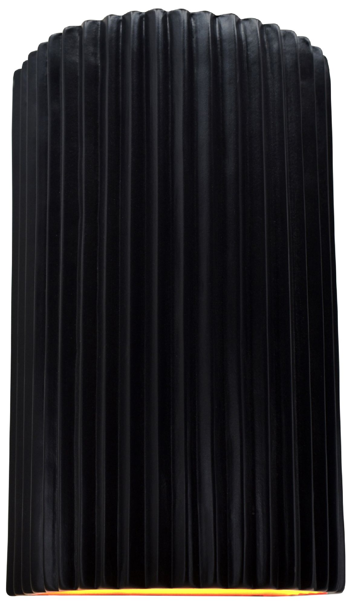 Ambiance 12.5" Gloss Grey Large Pleated Cylinder ADA Outdoor LED Sconc