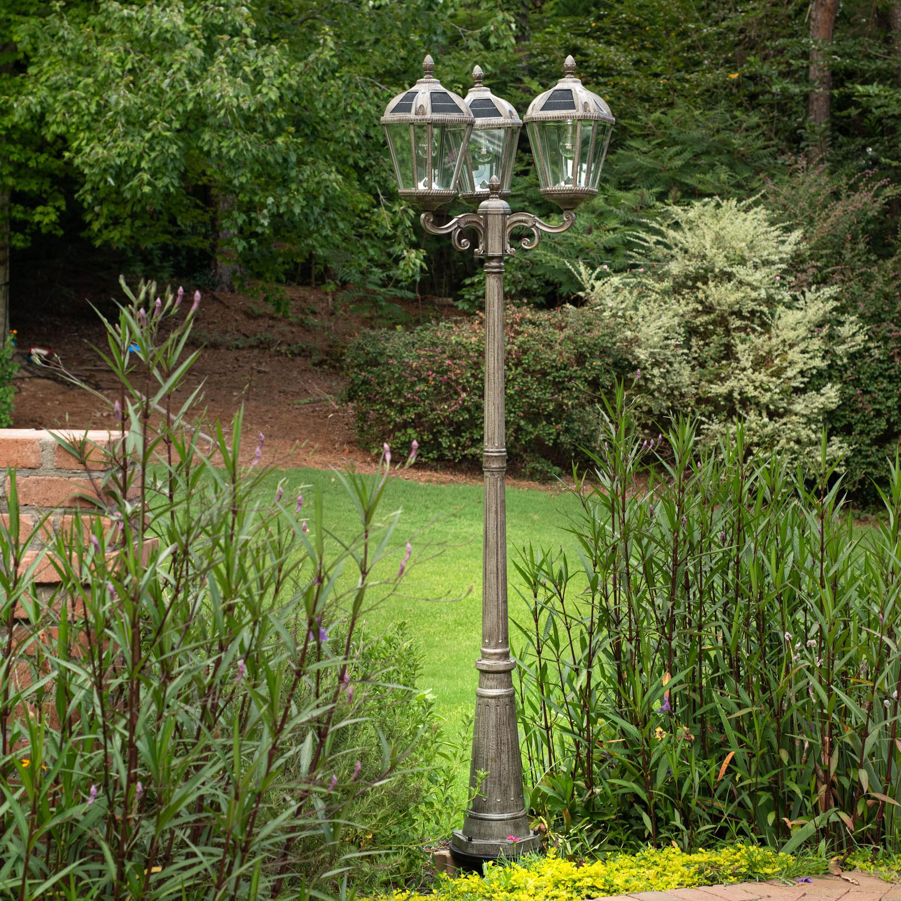 Royal Bulb 89"H Bronze 3-Head Solar LED Post Light with Base