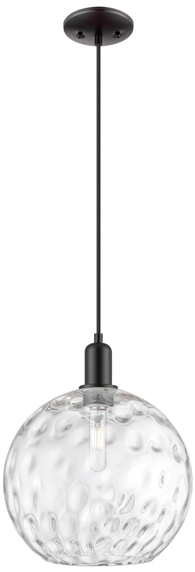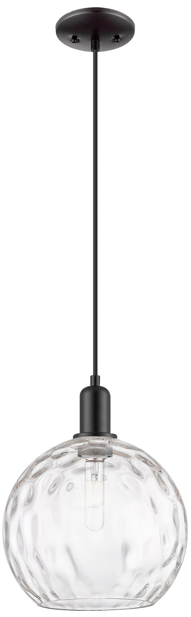 Arcadia Athens 12"W Black Cord Hung Mini Pendant w/ Water Glass Shade