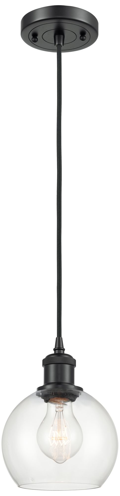 Ballston Athens 6"W Cord Hung Matte Black Mini Pendant w/ Clear Shade
